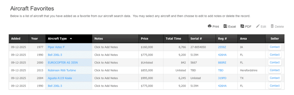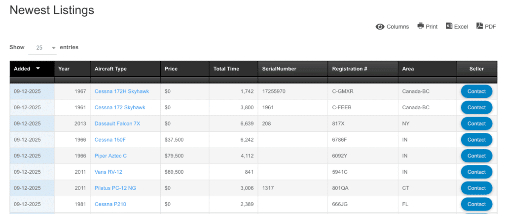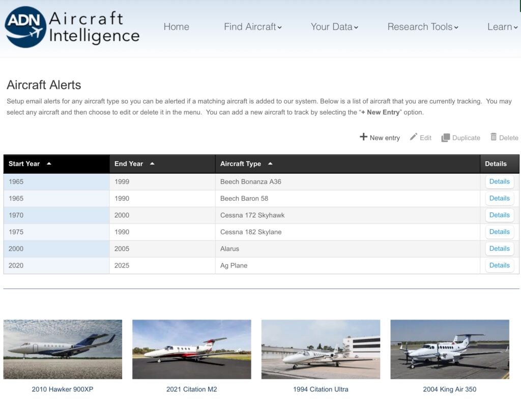 Be the first to know. Set up custom email alerts for any aircraft model, year, or price range. When a matching aircraft hits the market from any of our 2,900 sources, you'll get an instant notification.
