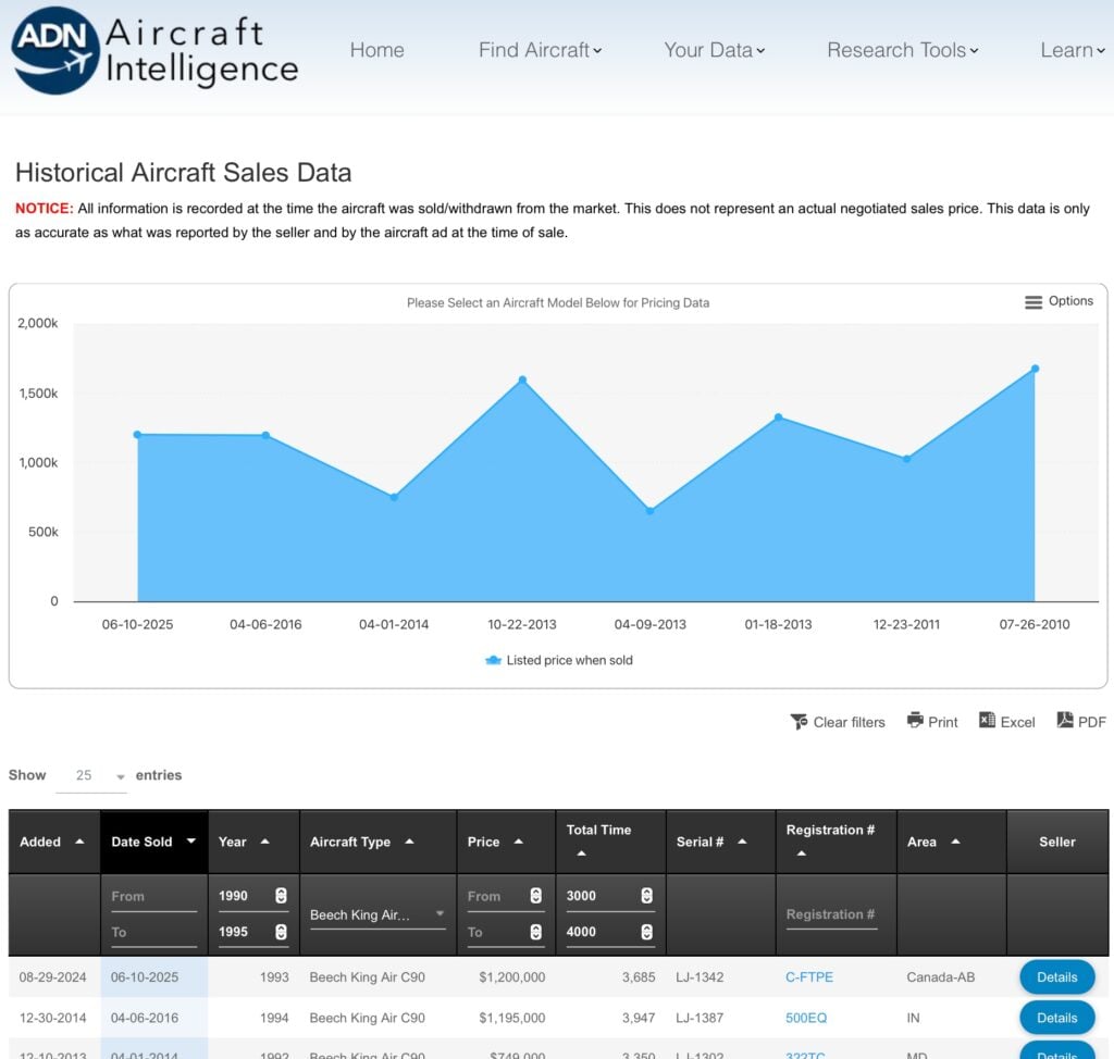 FindAircraft.com brings all the data you need into one place, giving you unparalleled market intelligence.